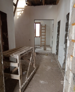 Сам дом построен из шлакоблока и кирпича.